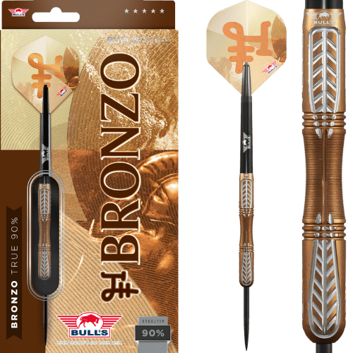 Bull’s Bronzo True 90% Steeltip -dartsit yhdistävät huolellisen muotoilun ja huipputason suorituskyvyn. Ne on suunniteltu pelaajille, jotka arvostavat tarkkuutta, kontrollia ja viimeisteltyä ulkoasua. Pronssikauden voimaa ja kauneutta ilmentävä pronssin ja hopean sävyinen viimeistely tekee näistä dartseista todellisen huomionherättäjän heittopaikalla.