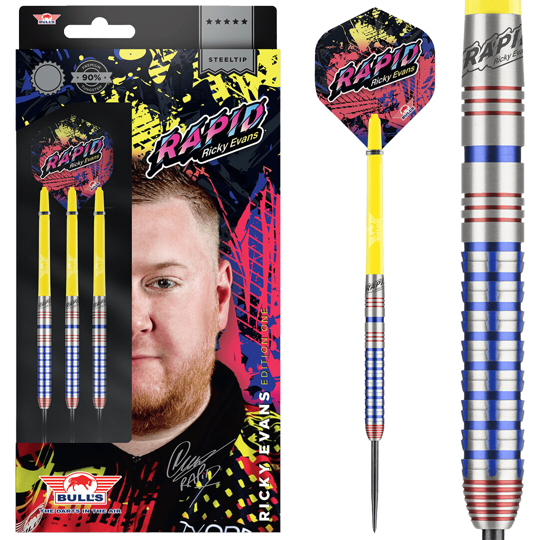 Tosissaan heittäville darts-pelaajille, jotka tyytyvät vain huippulaatuun, esittelemme Bull’s Ricky Evans 90% Tungsten -teräkärkiset dartsit. Nämä ovat täsmälleen samat tikat, joita Ricky Evans itse käyttää turnauksissaan – osoitus niiden tinkimättömästä laadusta ja tarkkuudesta. Jos tavoitteesi on pelata kuten ammattilaiset, nämä dartsit tarjoavat vertaansa vailla olevan pelikokemuksen, jolla astut itsevarmasti ja tyylillä kilpapelaamisen maailmaan.
