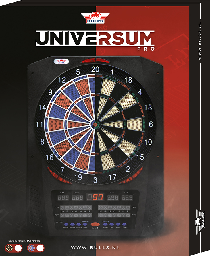 Bull’s Universum Pro on edistyksellinen elektroninen dartstaulu, joka tarjoaa kilpatason tarkkuutta ja monipuolisia ominaisuuksia aktiivisille pelaajille. Vahvistettu heittopinta, automaattinen pisteenlaskenta ja laaja pelivalikoima takaavat kestävän ja viihdyttävän pelikokemuksen.