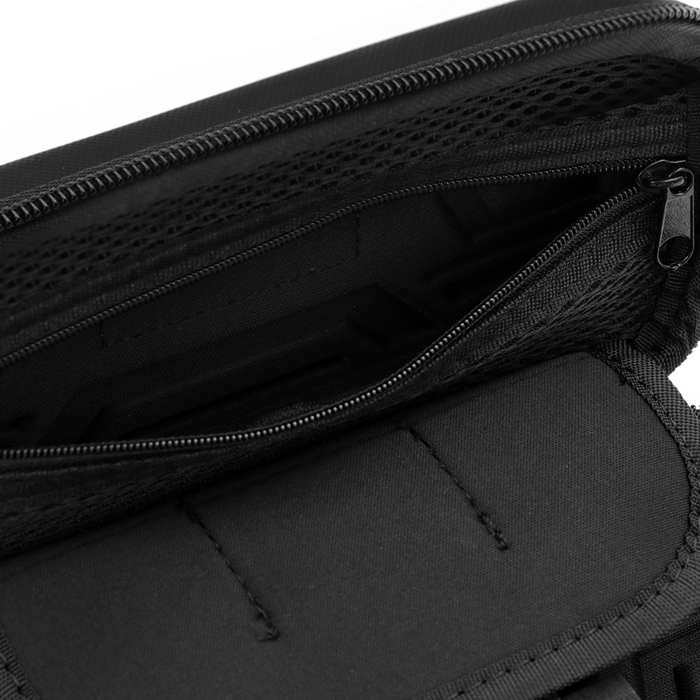 Kotelossa on tilaa yhdelle kokoonpannuista tikkaseteistä, lisäksi näppärä leveä joustohihna estää tikkojen paikaltaan liikkumisen. Suuri vetoketjullinen tasku suojaa varatatit, varret, sulat, kortit, puhelimen ja muut oheistarvikkeet yhdessä paikassa.
